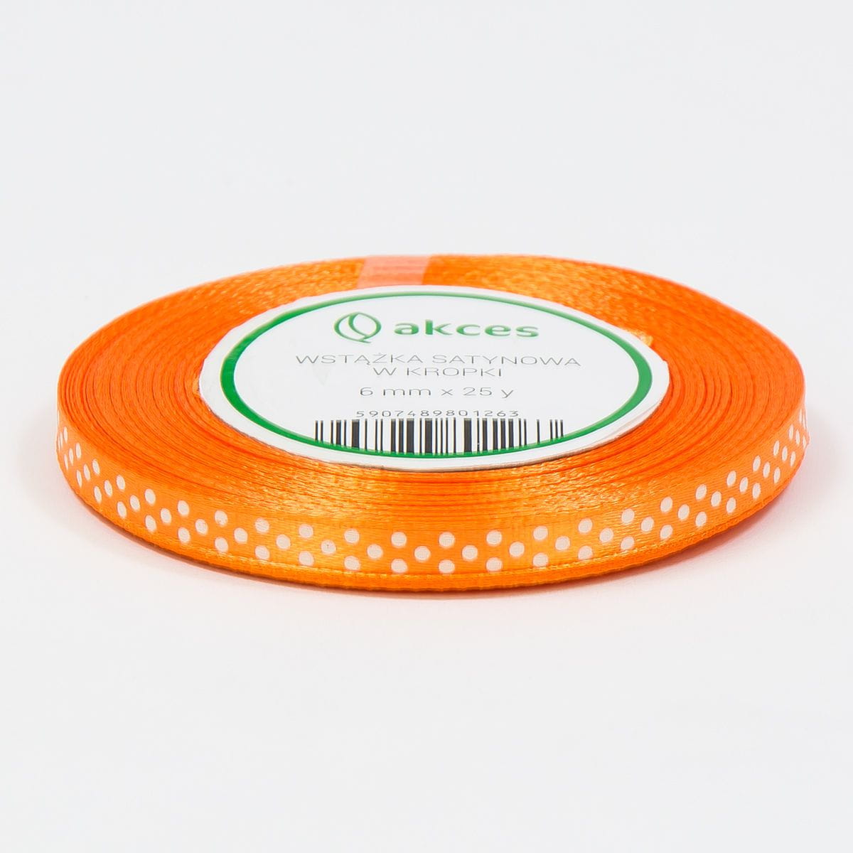 Wstążka satynowa w kropki drobne 6mm/22mb - 04 orange